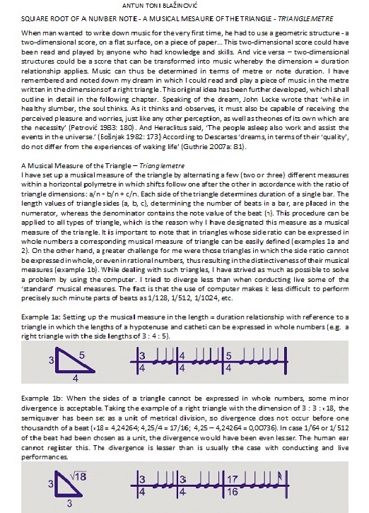 SQUARE ROOT OF A NUMBER NOTE -TRIANGLEMETRE-THE MUSICAL MEASURE OF THE TRIANGLE-TROKUTOMETAR-GLAZBENA MJERA TROKUTA by Antun Toni Blazinovic